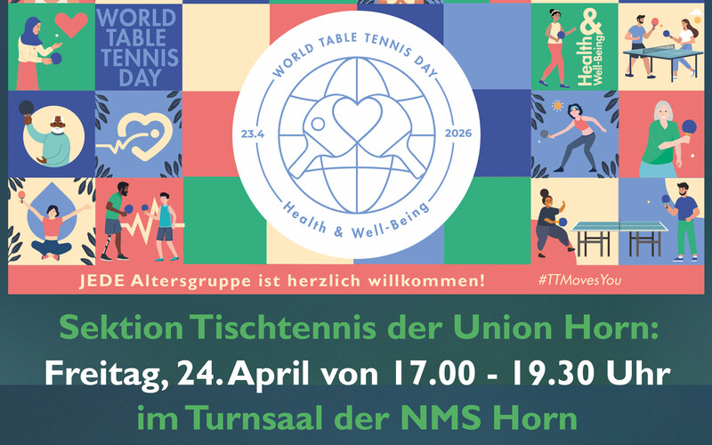 Das 12.TTK-Enzesfeld Hobby-Tischtennis-Turnier findet am 25.04.2026 in der Sportschule Lindabrunn statt, Nennungen bis 22.04.2026.
