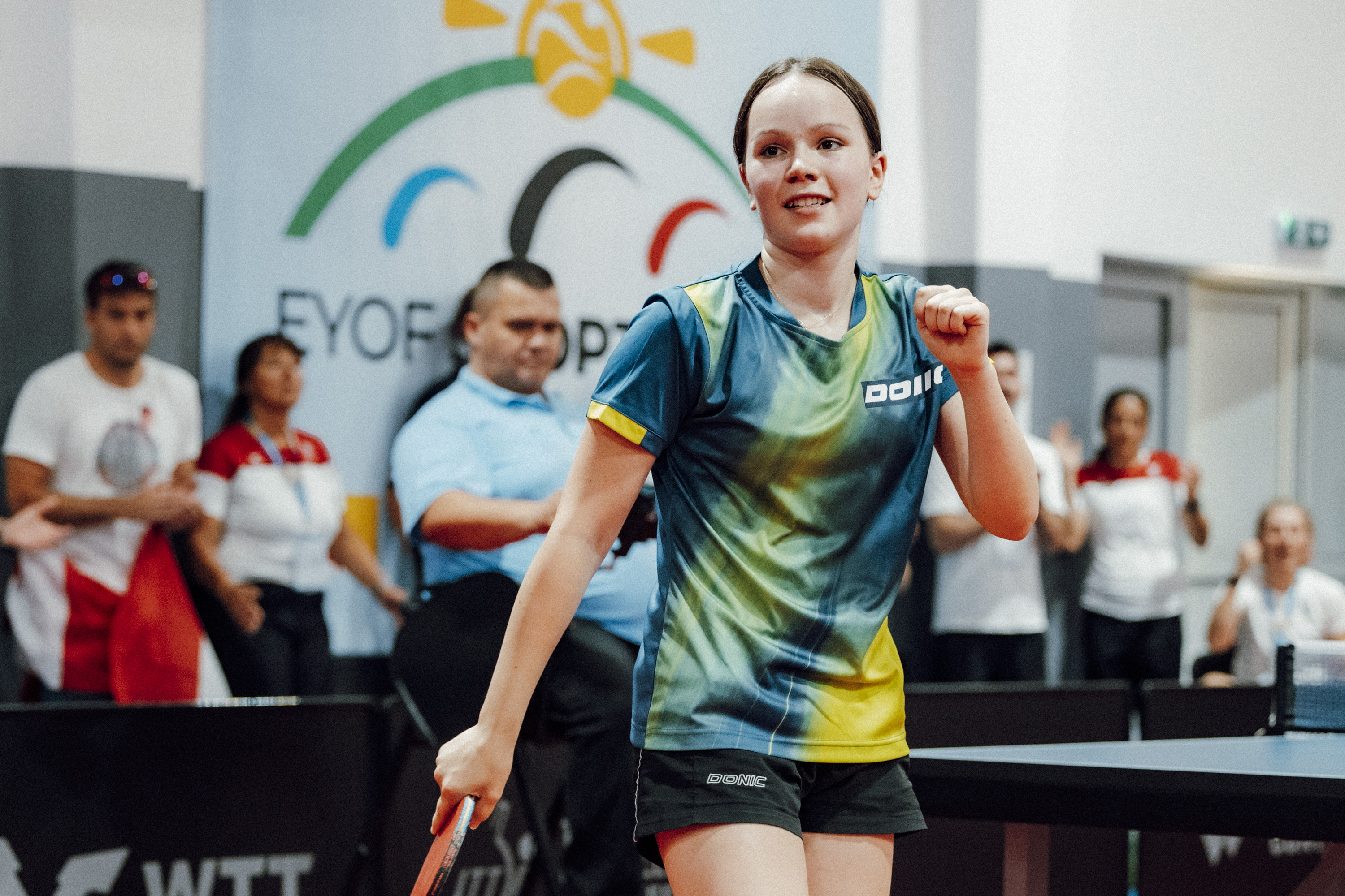 Fünf Spiele, fünf Siege! Nina Skerbinz setzt ihren Triumphzug bei den 18. Europäischen Olympischen Jugendspielen in Skopje/Mazedonien fort. Österreichs Fahnenträgerin stürmte nach dem Gruppensieg mit einem 4:1 gegen die als Nr. 6 gesetzte Kroatin Franka Miskic und einem 4:0 gegen die Serbin Maja Vanjo ins Halbfinale. Im Mixed gewann Skerbinz an der Seite von Tobias Tischberger Bronze.