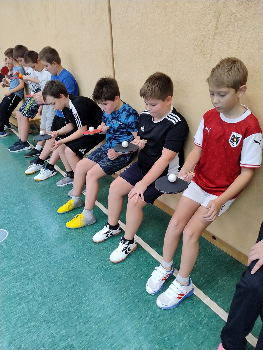 Dass eine Tischtenniseinheit mehr als nur Schlagen und Spielen beinhaltet, war den Teilnehmenden schnell klar. „Was wir in den kommenden Wochen erarbeiten wollen, hat wenig mit dem Ping-Pong zu tun, das viele kennen“, meint Franz Reiss augenzwinkernd während er die Aufwärmübungen ansagt. Der ehemalige Staatsligaspieler und Landesmeister leitet die Einheiten. An seiner Seite sind mit Walter Seper und Reinhard Pleßl zwei weitere Übungsleiter der Union Horn.