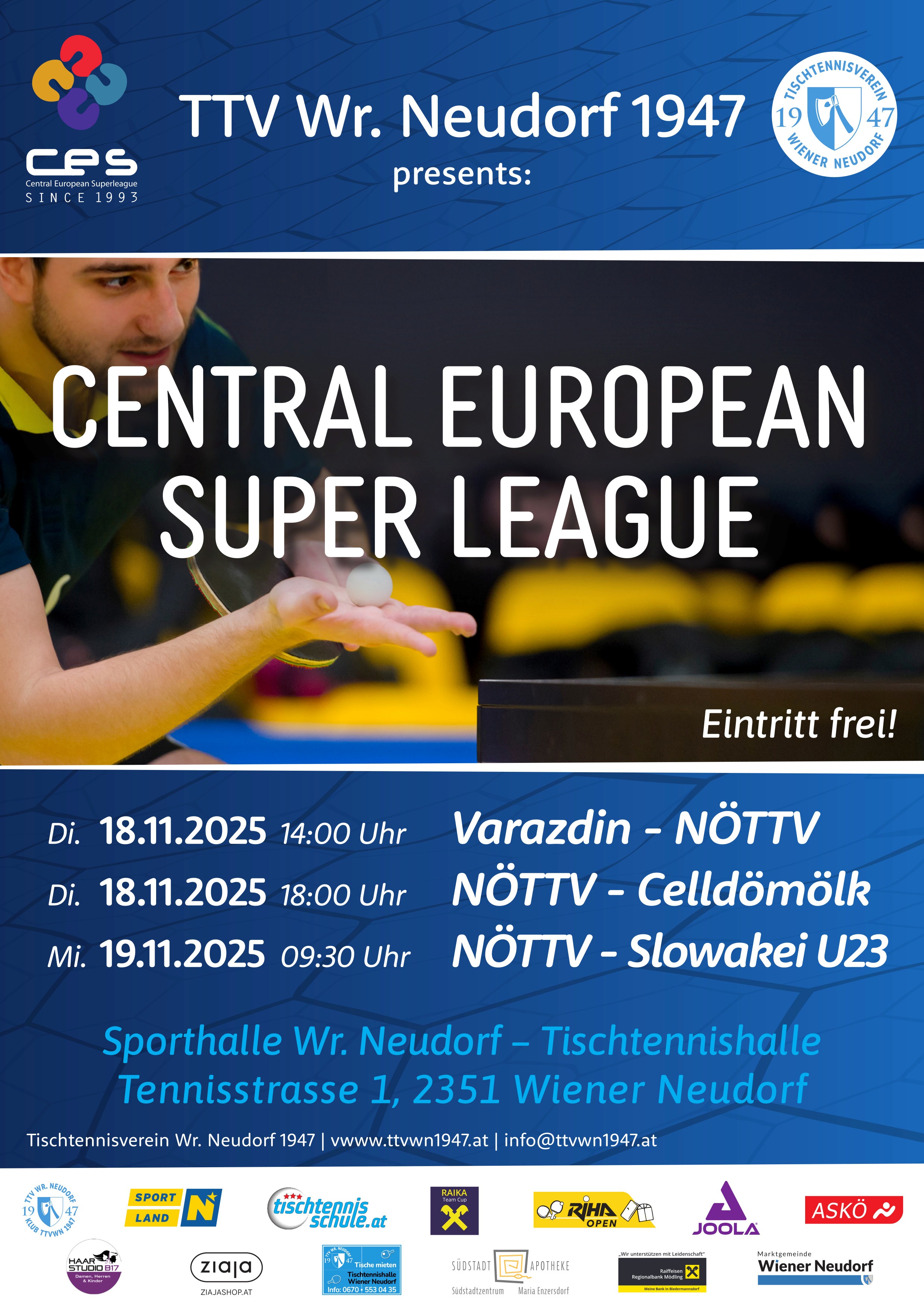 Die Vorrunde Gruppe B der Central European Superleague (CES) wird am 18. + 19. November in Wiener Neudorf ausgetragen!