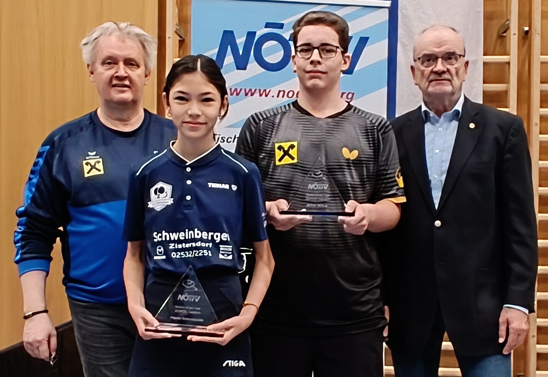 Im Rahmen der Nachwuchslandesmeisterschaften in Gänserndorf am Samstag den 8. November überreichte NÖTTV- Präsident Eduard Herzog die Trophäen für die herausragenden Leistungen in der Ratings Central -Wertung des (NÖTTV) in der Saison 2024/2025. Den begehrten Titel „Rookie of the Year“ erhielten in diesem Jahr Paula Schultschik (Union Raika Zistersdorf /TTC Gr. Dietmanns) und Oliver Böhm (Sportunion Mistelbach).