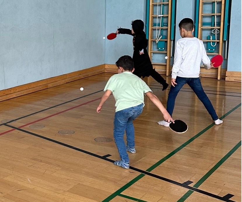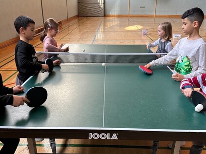 Viel Spaß machte das Konterspiel mit der Vor- und/oder Rückhand am Tisch. Für einen kurzen Moment war es mucksmäuschenstill, wenn der Trainer oder die Trainerin dabei getroffen wurde. Nach lächelnd erfolgter Korrekturanweisung fiel die kurzzeitige Spannung augenblicklich und der nächste Versuch landete zielsicher am Tisch. Ein abschließender Höhepunkt war das Aufschlagtraining. Auch hier ist eine gute Auge-Hand-Koordination von großer Bedeutung, die viel Raum für Verbesserung in den kommenden Übungseinheiten lässt.