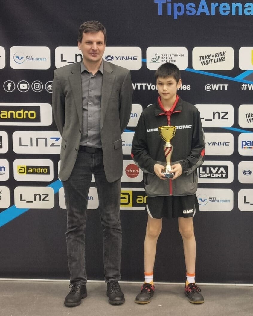 „Die Vorbereitung in Ochsenhausen hat sich voll ausgezahlt“, strahlte Trainer-Mama Li Qiangbing an der Seite von Louis Fegerl, der in Oberschwaben auch mit seinem Idol Hugo Calderano ein paar Bälle hatte spielen dürfen. Voll motiviert eroberte der 12-Jährige dann in Linz U13-Gold und marschierte auch ins U15-Halbfinale, wo er vom Ukrainer Volodymyr Nevizhyn mit einem 0:3 gestoppt wurde. Im U15-Mixed mit der Rumänin Maya Madar (Rum) wurde der Wr. Neudorfer Fünfter.