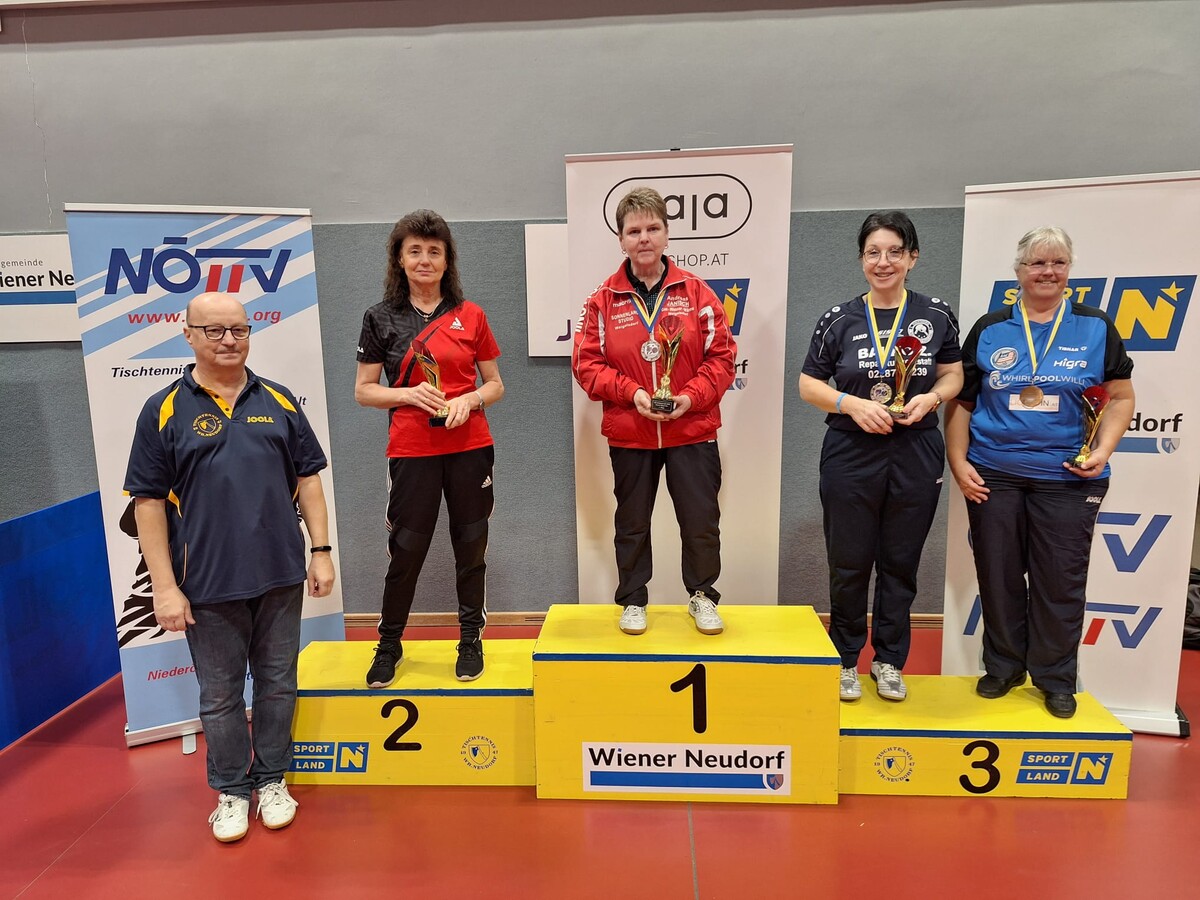 Bei den Damen konnte sich im Bewerb 50+ Sonja Gollowitzer vom TTSV Weigelsdorf mit einem 3:1-Matchgewinn gegen Hannelore Neuhold (TTC Münchendorf) zur Landesmeisterin krönen, den Bewerb 65+ entschied Ilse Pavousek (ebenso vom TTSV Weigelsdorf) mit einem klaren 3:0-Sieg gegen Margit Haas (Badener AC-TT) für sich.