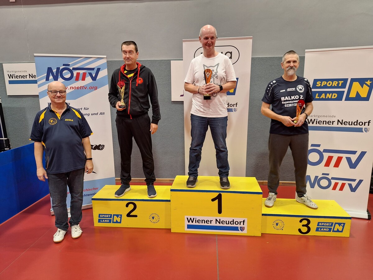 Gerhard Forthuber (ATUS Gumpoldskirchen) konnten den 55Plus-Bewerb mit einem 3:1-Sieg über Martin Konwalinka vom TTC Bruck/Leitha siegreich beenden, Landesmeister der Herren 60Plus darf sich Roland Hingel (TTC Gallbrunn) nach einem 3:1-Finalerfolg gegen Johann Strel von der Sportunion Aschbach nennen.