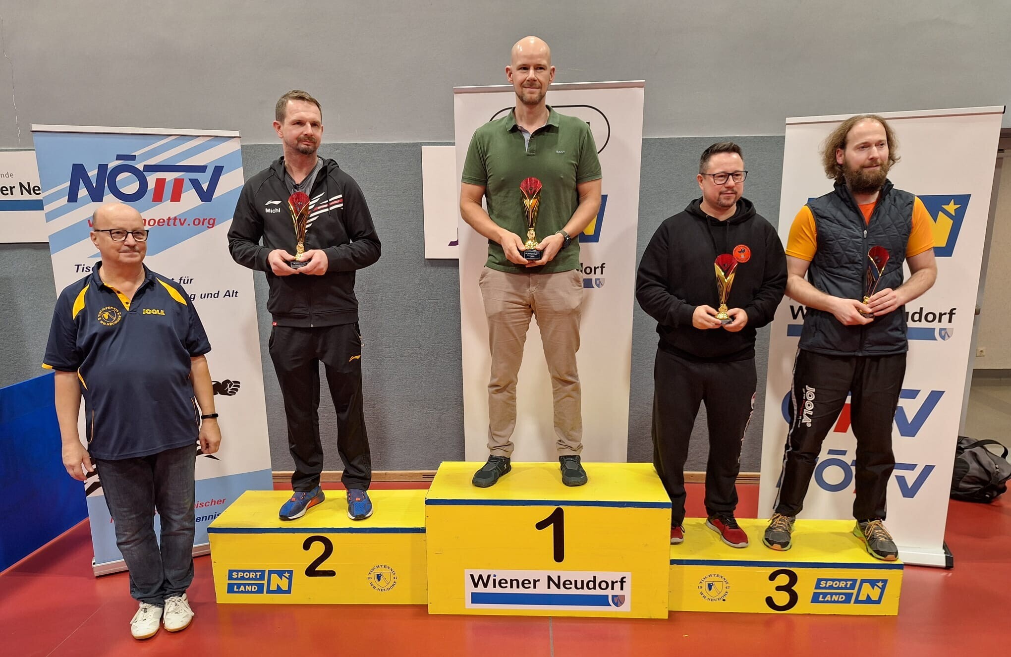 Martin Skalicky (ATUS Gumpoldskirchen) wurde souverän Landesmeister im Bewerb Herren 40+, er gab im gesamten Turnier keinen einzigen Satz ab, entschied auch das Finale glatt mit 3:0 gegen Michael Wendl (ESV Amstetten TT) für sich. Eben jener Michael Wendl war es auch, der sich im Bewerb 50+ (Herren) erneut das Endspiel erreichen konnte, dort dann nach hartem Kampf 1:3 dem neuen Landesmeister Dietmar Deimlbacher (Union Kaumberg) den Vortritt lassen musste.