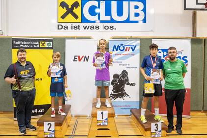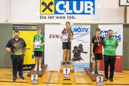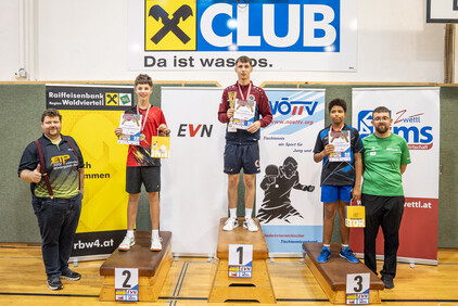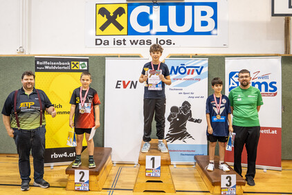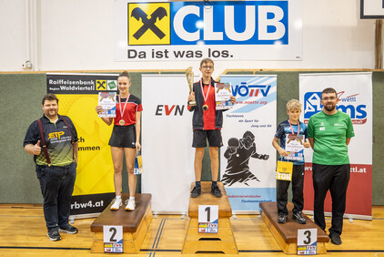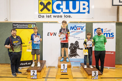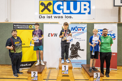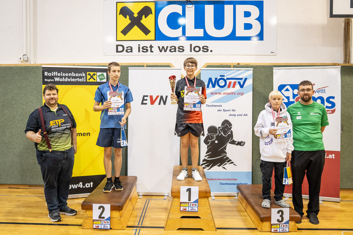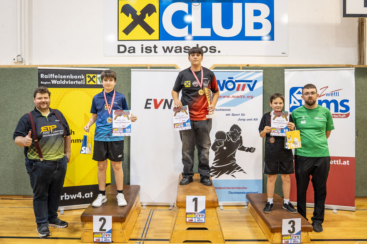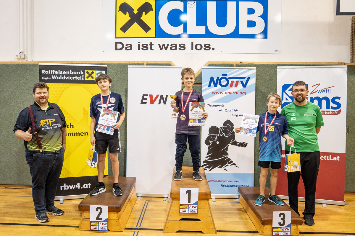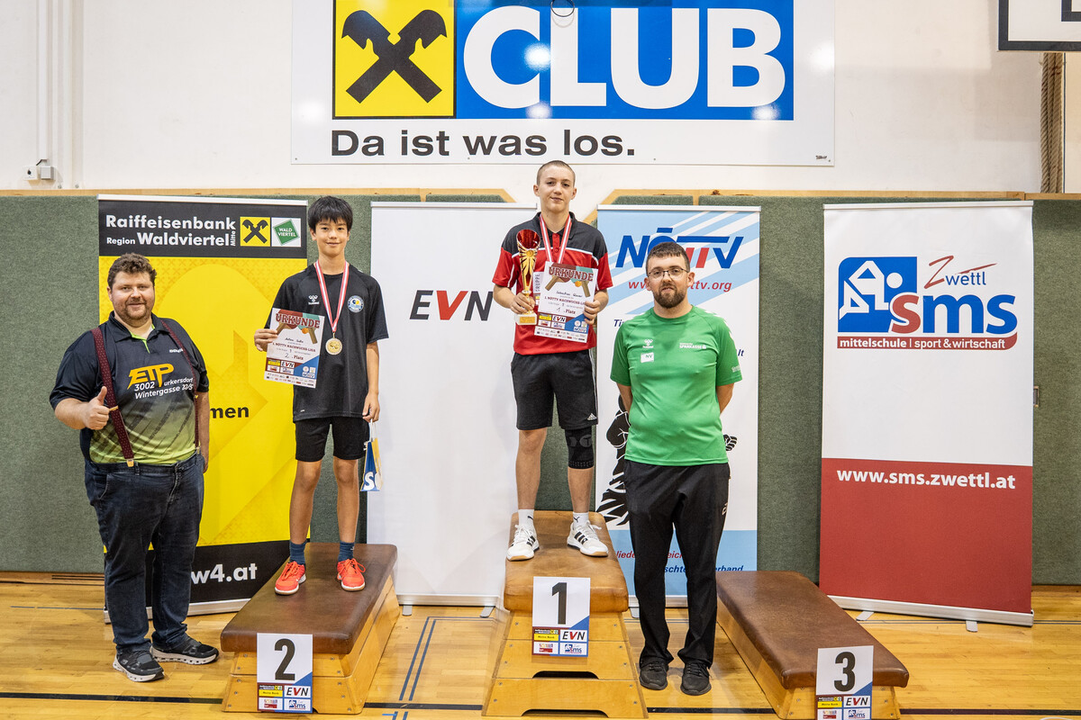 Im Rahmen der 1. NÖTTV-Nachwuchsliga konnte sich Jakob Hauss (Sportunion Wolfpassing) souverän den Sieg in der Top-Gruppe sichern. Auf Platz zwei landete Jano Putz (ATUS Gumpoldskirchen) knapp vor David Schreiber (TTC Gallbrunn). Für die beste Platzierung eines Waldviertler Spielers sorgte Manuel Gruber (UTTC Zwettl), der den Sieg in der 2. Gruppe errang, Gruppe 3 konnte Elia Pascutti vom TTV UKJ Kirchberg am Wagram für sich entscheiden. Die Pokale, Medaillen und Urkunden wurden vom Obmann des UTTC Zwettl, Martin Mayerhofer, sowie vom NÖTTV-Verbandsleitungsmitglied und Sektionsleiter Tischtennis der Sportunion Ottenschlag, Andreas Weidenauer, überreicht.