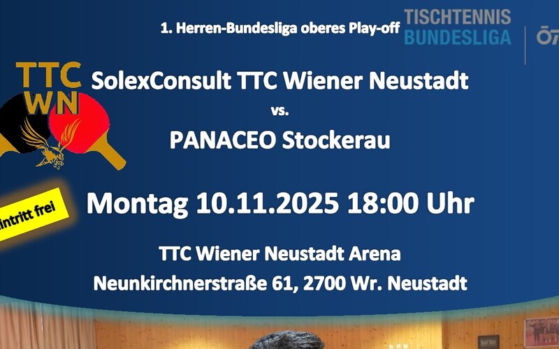 Das TTC Olympic Wien Herbstturnier findet am 8. 11. 2025 in 1200 Wien statt, Nennschluss ist am 4.11.2025, 14:00 Uhr.